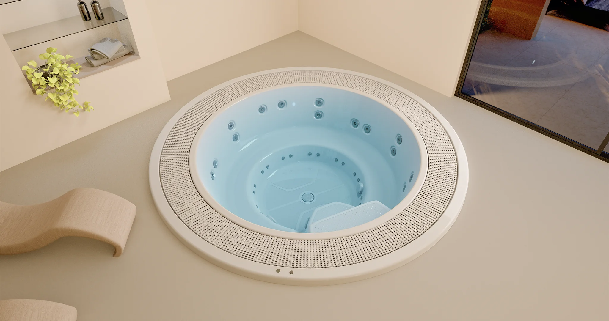 With a diameter of 3 metres , this built-in hot tub combines sophistication and functionality to offer an exceptional hydromassage experience.