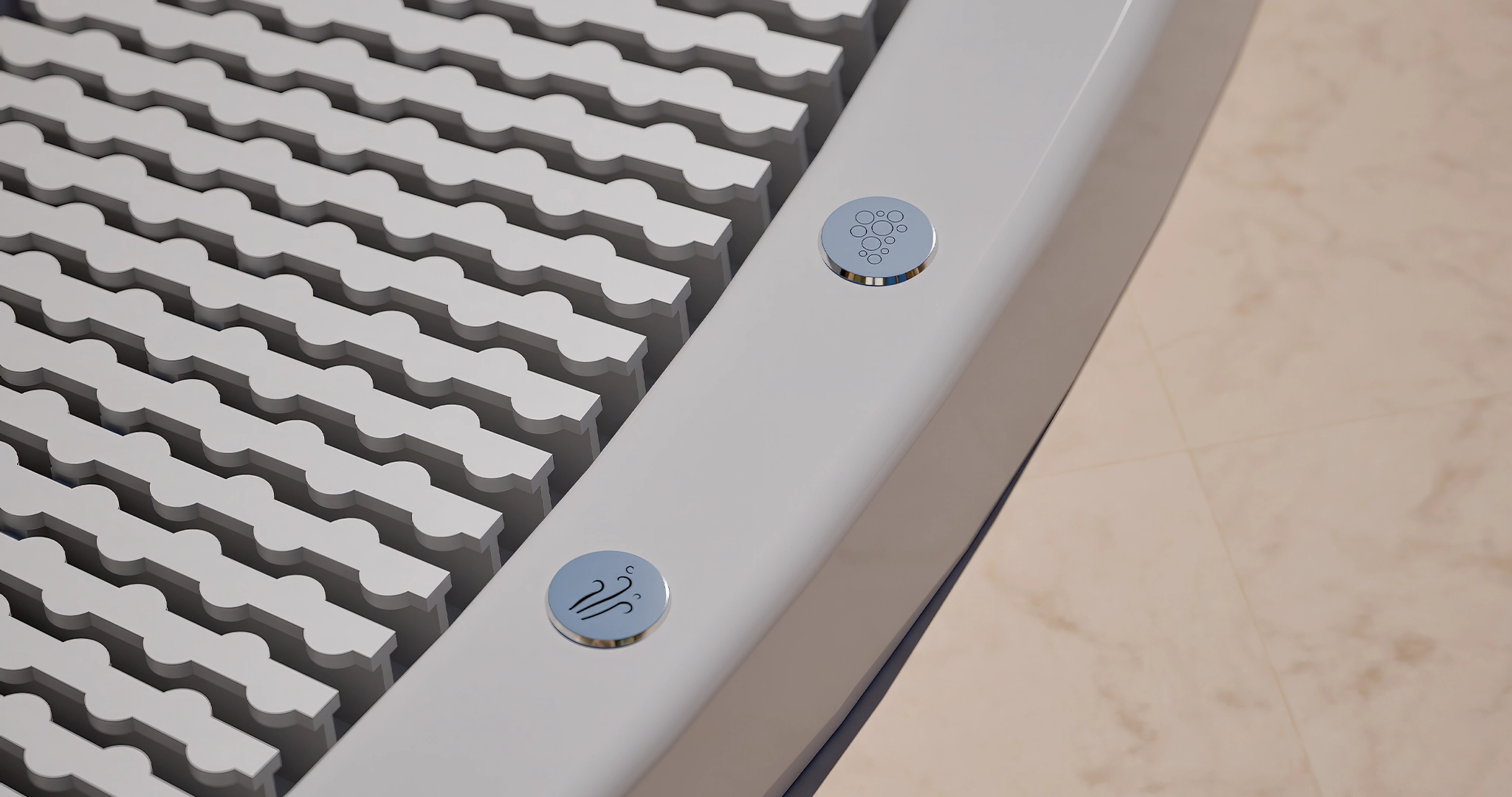 With compact dimensions of 2.30 metres in diameter, the Capri hot tub fits perfectly into a variety of environments, from wellness- focused commercial establishments to residential homes looking for a professional-quality hot tub . Its two piezoelectric push buttons offer easy and comfortable control of the massage, while the stainless jets and nozzles add a touch of elegance and durability to the product.
