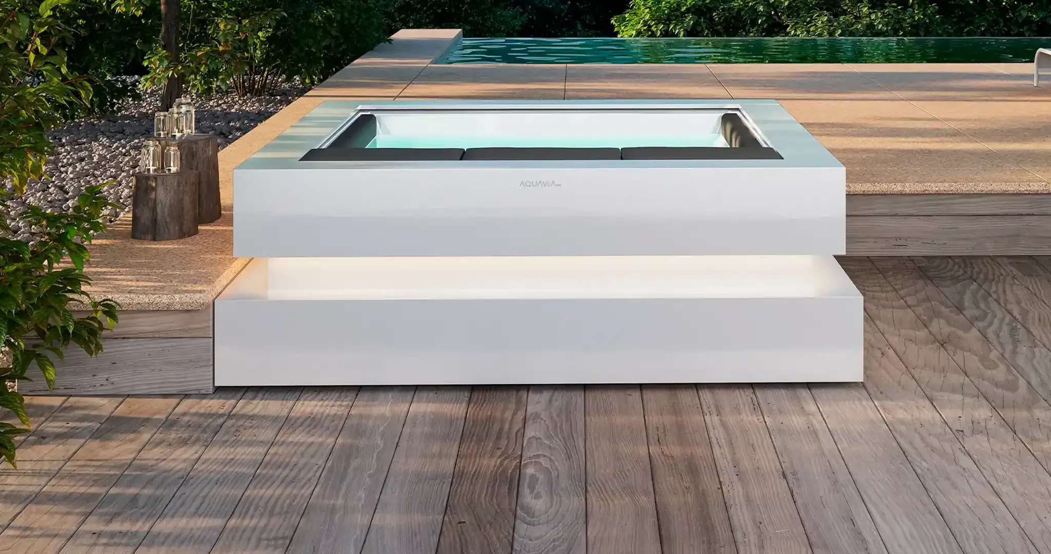 Discover the Spa Cube by Aquavia Spa, a true icon of luxury and sophistication to enjoy well-being in your own home. This outdoor hot tub combines design, engineering and contemporary architecture, offering a unique relaxation experience.