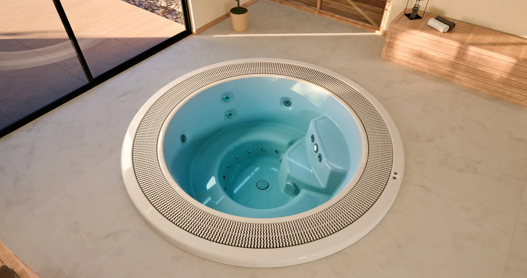 The Martinique hot tub is perfectly suited to both businesses open to the public and private residential areas . It is equipped with the innovative Relax Impact System , which guarantees a complete and relaxing massage with bubbles, providing an unrivalled hydromassage treatment. Enjoy LED chromotherapy options, which allow you to personalize the atmosphere with relaxing lighting.