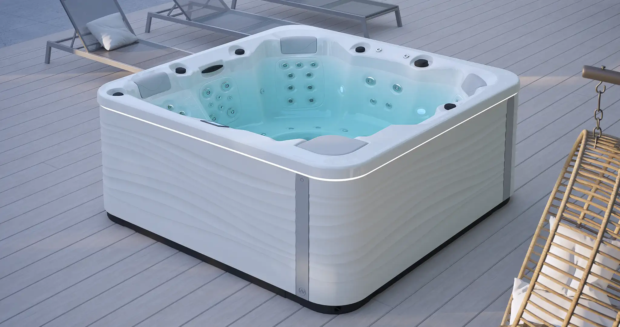 The Soft Aurora Jacuzzi is an exclusive model from Aquavia Spa that combines innovation, efficiency, and design in a perfect format. Choose a premium experience with a design spa, created to elevate your outdoor space with style and functionality.