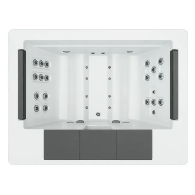 The Spa Suite stands out for its minimalist and elegant design, which fits perfectly into both private homes and hotel suites. With four different positions inside, including two ergonomic loungers, this jacuzzi offers an incomparable hydrotherapy experience.